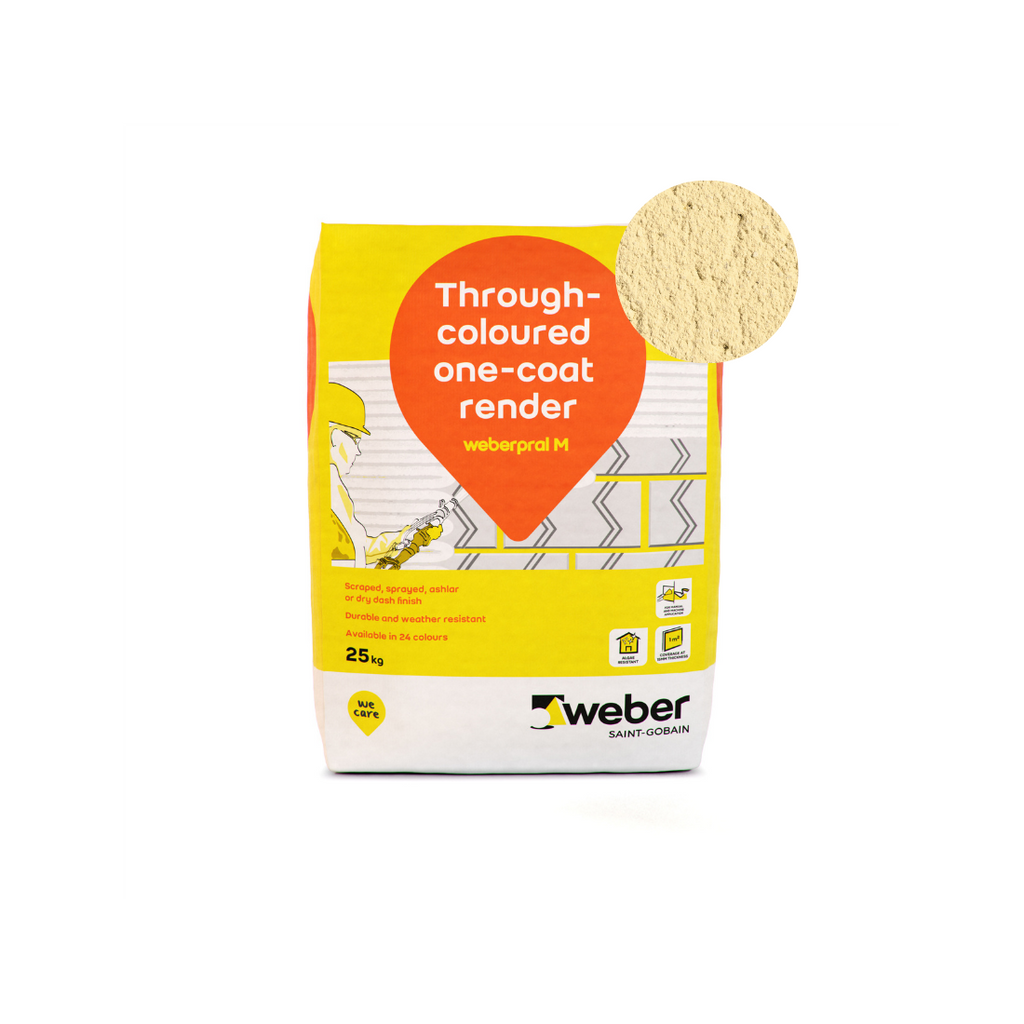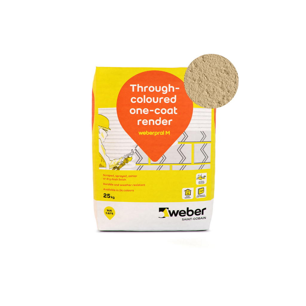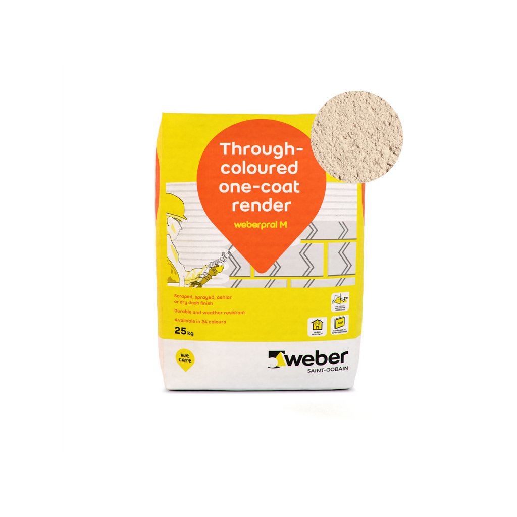 Weber Weberpral M is a through-coloured monocouche render suitable for hand or machine application.